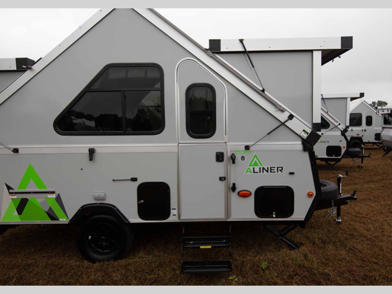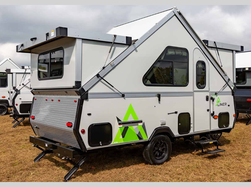 Each is built lightweight with an Azdel composite roof/sidewalls, and includes aluminum wheels, a Dexter rubber torsion axle, and a gray exterior fiberglass. There are also 14" tires, four stabilizer jacks, plus high wind lift assist. The interior offers 30% more storage room, more living space, taller counter tops, a taller bed, and the highest capacity chassis in the Aliner brand.
