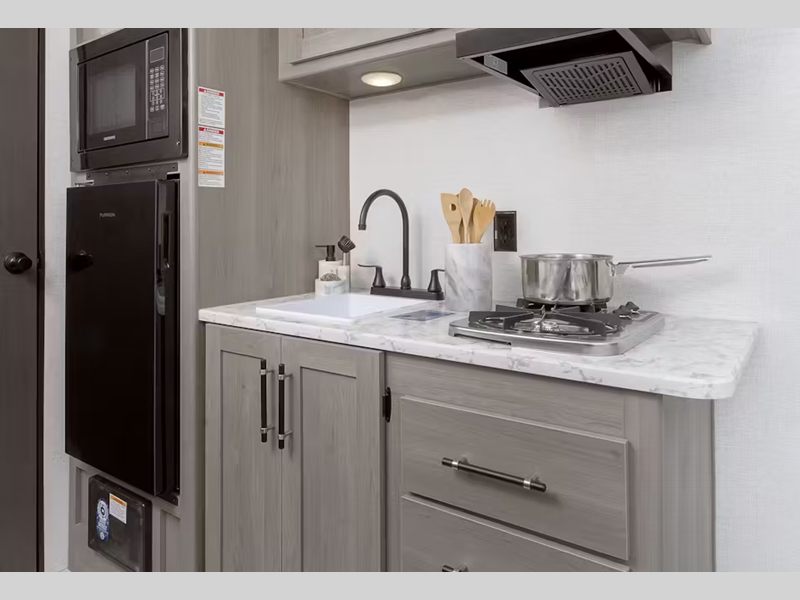 Sleeps 4 Slides 1 Length 22 ft 10 in Ext Height 10 ft 4 in Interior Color Pewter Hitch Weight 565 lbs Dry Weight 4029 lbs Cargo Capacity 1071 lbs Fresh Water Capacity 21 gals Grey Water Capacity 30 gals Black Water Capacity 30 gals Tire Size ST225/75R15E Furnace BTU 20000 btu Available Beds Queen Refrigerator Type 12V Refrigerator Size 7.7 cu ft Cooktop Burners 2 Number of Awnings 1 LP Tank Capacity 20 lbs Water Heater Type Tankless Awning Info 10' Power Axle Count 1 Number of LP Tanks 1 Shower Type Standard
