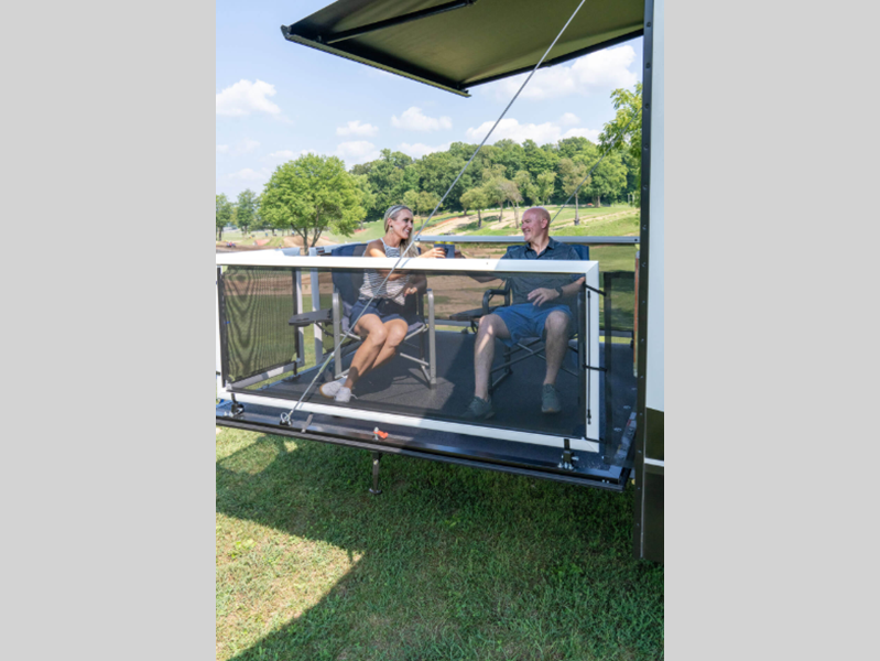 - Ramp Patio Kit: Rear Awning, Pull Down Screen, Ramp Door Threshold