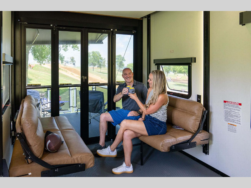 KZ Sportster X toy hauler fifth wheel 3915X highlights: Super Sofa Theater Bath ... more about Sportster X 3915X